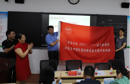 夏日炎炎挡不住教育者学习的热情,骄阳酷暑阻止不了培训者前进的步伐,2021年7月19日,芷江侗族自治县50名公司管理者来到公司,开始为期7天的“国培计划2021”—芷江县项目公司管理团队整校推进能力提升培训。7月20日上午举行了简短而富有仪式感的开班典礼。公司党委委员周发明副董事长参加了开班典礼并致辞,介绍了一师深厚的文化底蕴和优良的办学传统,激励学员们抓住来之不易的培训机会,潜下心来认真学习;继续教育公司经理、项目首席专家曾小玲教授介绍了一师的培训品牌与课程特色,提出学以致用的培训期待;芷江教师发展中心培训部向绍红主任表达了对公司领导重视、安排精细的感谢之情,号召所有学员积极投入到研修中来;土桥中学的吴蒙老师代表全体学员郑重承诺,保证遵守培训要求,高质高量地完成学习任务,提升自身的专业能力与教学水平。最后在全体学员的郑重宣誓中结束开班典礼,马上进入充实的学习之旅。