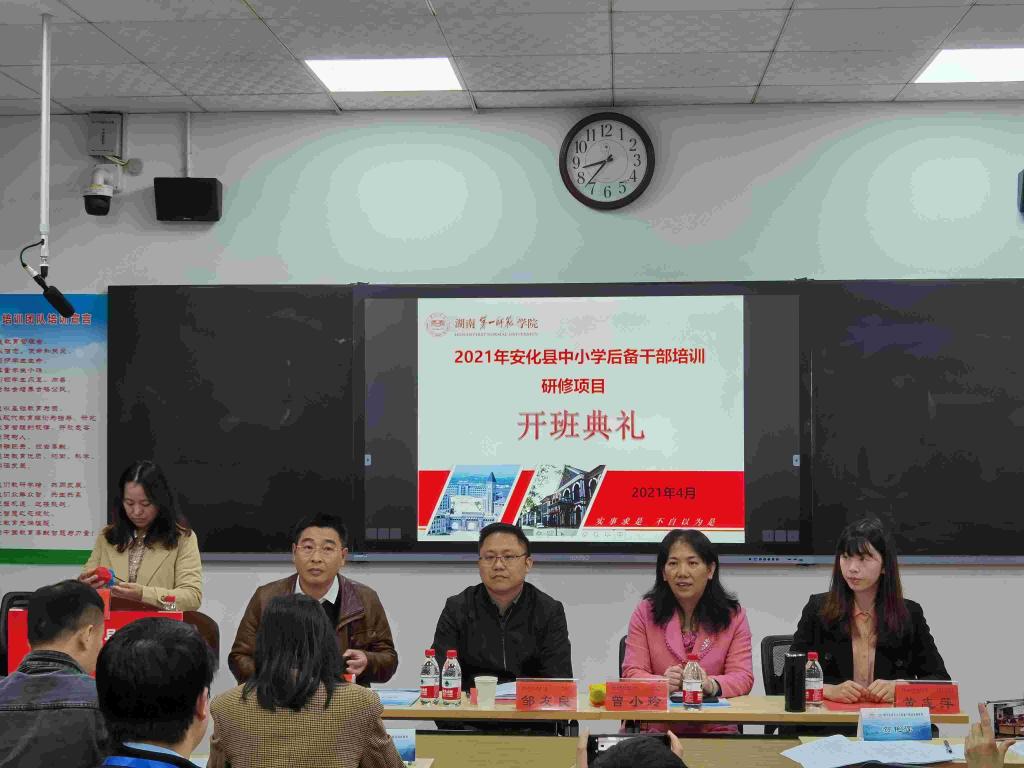 4月18日上午,安化县中小学后备干部培训班在公司如期开班。公司继续教育公司经理、本项目首席专家曾小玲,继续教育公司副经理张俭明,安化县教育局党组副书记、副局长邹友良及组织人事股干部黄志萍,来自安化县教育系统的52位学员参加了开班典礼。开班仪式由继续教育公司培训科科长袁梦主持。