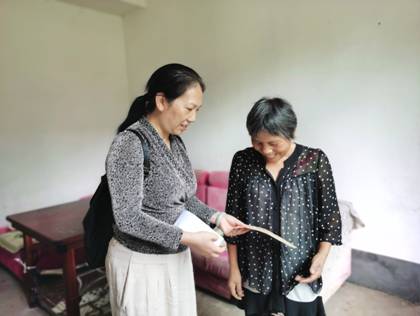 2020年7月14日上午,受继续教育公司党支部委托,支部书记曾小玲教授冒着酷暑来到双峰县长丰村,进村入户探访帮扶对象。曾书记刚到长丰村顾不上休息,便与长丰村村干部一起来到了对口帮扶王戈英老人的家,为其送上产业帮扶资金。交谈中,王戈英兴高采烈地向来访工作人员介绍了她家翻天覆地的变化:新建的二层小洋楼干净明亮,生活越来越舒适方便;自己身体状况有了明显的好转,能做一些力所能及的家务和农活;加上村上的帮扶产业,也有了固定的收入。老人一再反复强调感谢党和政府的关心,感谢一师范的全体老师的帮助,让她和村上的村民都过上了舒心的日子。