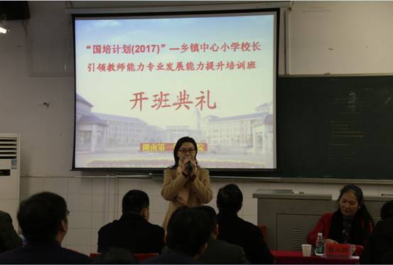 11月21日上午,由公司承办的“国培计划(2017)”乡镇中心小学董事长引领教师专业发展能力提升培训班在科A101举行了开班典礼。公司国培办主任曾小玲教授,副主任黄朝霞教授等出席了开班典礼。