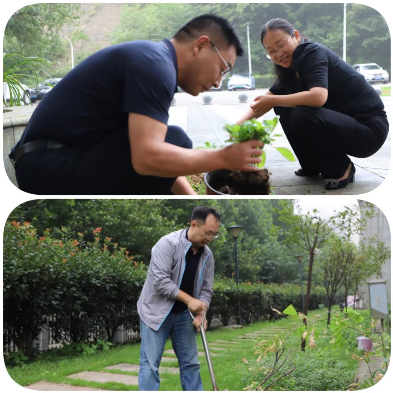 活动当日,各个党员干部从家里带来适合栽种的绿植,有紫藤、风车茉莉、月季、绣球、朱顶红、矮竹、芦荟等十多个品种。种植前公司党委书记祝娅同志带领大家认真巡查北栋前后坪的绿化带,清除悬挂在树上的塑料袋、清理草坪内的白色垃圾和杂物;接着,针对干枯、裸露的绿化带,进行增补栽种绿植的规划;最后,就本次秋季种植的挖土、栽种、施肥与浇水等环节,进行合理分工。
