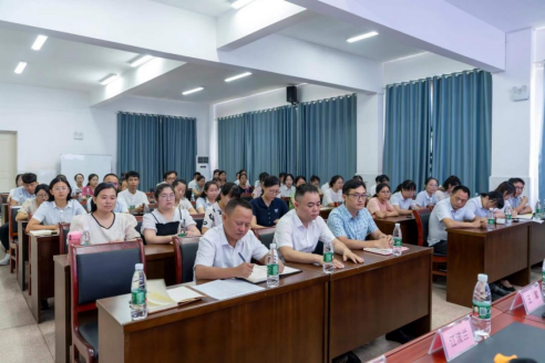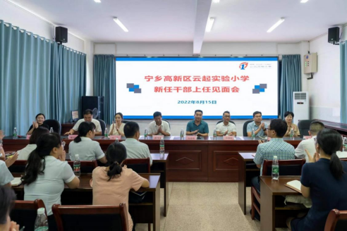 长夏炎天气郁蒸,而万物盛极。盛夏末伏,在湖南一师宁乡高新区云起实验小学报告厅召开了新任干部上任见面会。宁乡高新区党工委苏继桃书记,英国be365官网张俭明副经理,宁乡市教育局党组书记、局长陈伟平,宁乡市金洲镇党委王军书记,公司第一附属小学党支部书记、董事长方芳,英国be365官网合作办学科赵华科长,宁乡市教育局喻汉科副局长,公司第一附属小学江波兰副董事长,宁乡高新区管委会企业服务中心魏清明副主任,宁乡市金洲镇基地校喻继星董事长莅临现场。