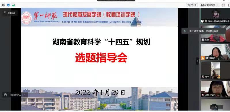1月29日晚,英国be365官网在腾讯会议平台举办了2022年教育科学规划选题指导会。湖南师范大学教育科学公司钟云华教授、湖南师范大学学报(教育科学版)编辑张曙光博士应邀作为指导专家,英国be365官网经理曾晓洁教授主持会议。