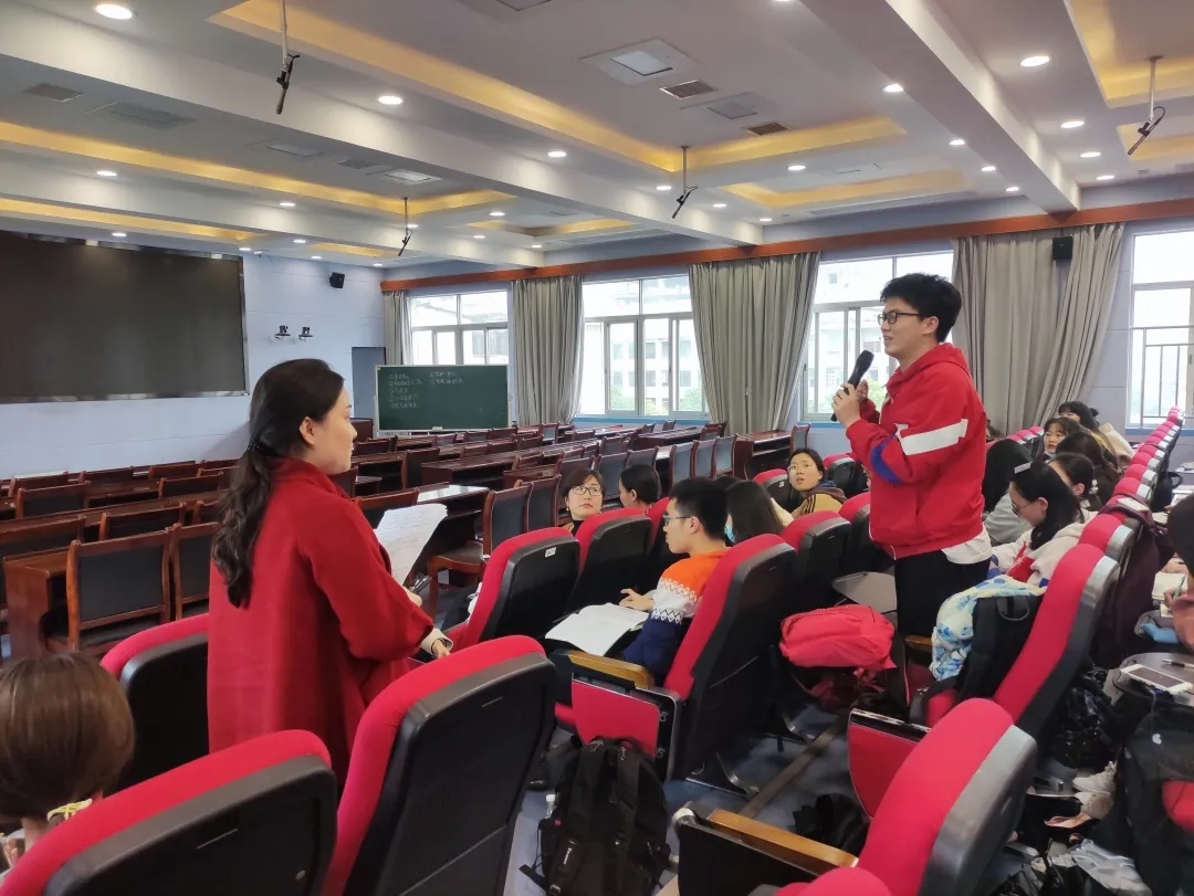 课后,“润之班”多名同学就“翻译具体字词是否应该保持严谨”“为什么朗读次数如此之多”“面对农村小员工积累不够,如何在教学中进行拓展”等问题向老师请教,并得到了在场多位老师的回应和解答。屈晓兰、刘汾、张泽佳、刘雅琴等老师均对两位老师的课堂给予了高度评价,认为课堂体现了语文的综合性,文化和思政的渗透非常自然。“润之班”同学也表示,要广泛阅读,夯实基础,向两位老师看齐。