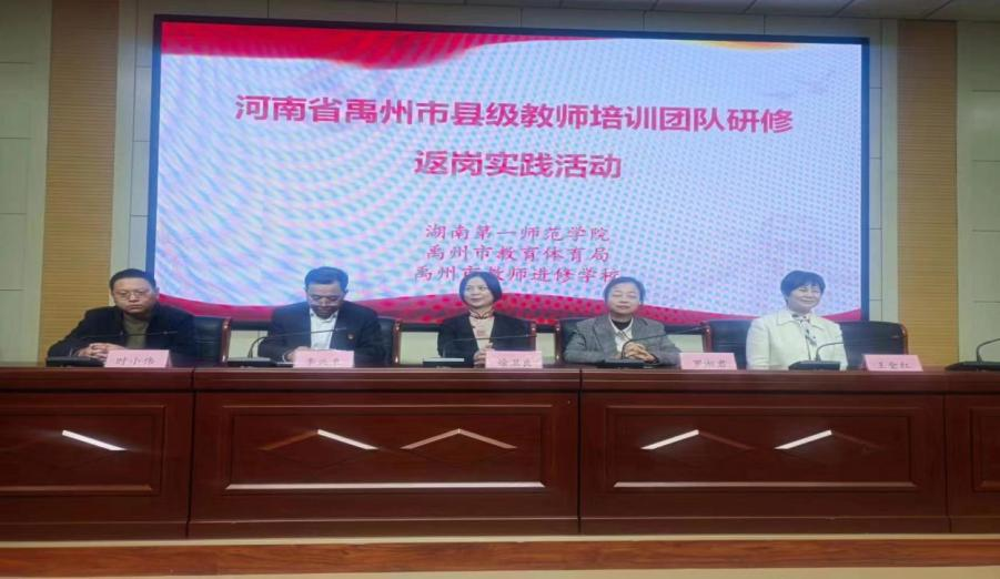 11月11日上午,此次返岗实践指导活动在禹州市第五实验公司举行了项目启动仪式。首先由禹州市教师进修公司李兴来书记致欢迎辞,对湖南一师专家团队的到来表示诚挚的欢迎,对参培的老师们提出殷殷期望。