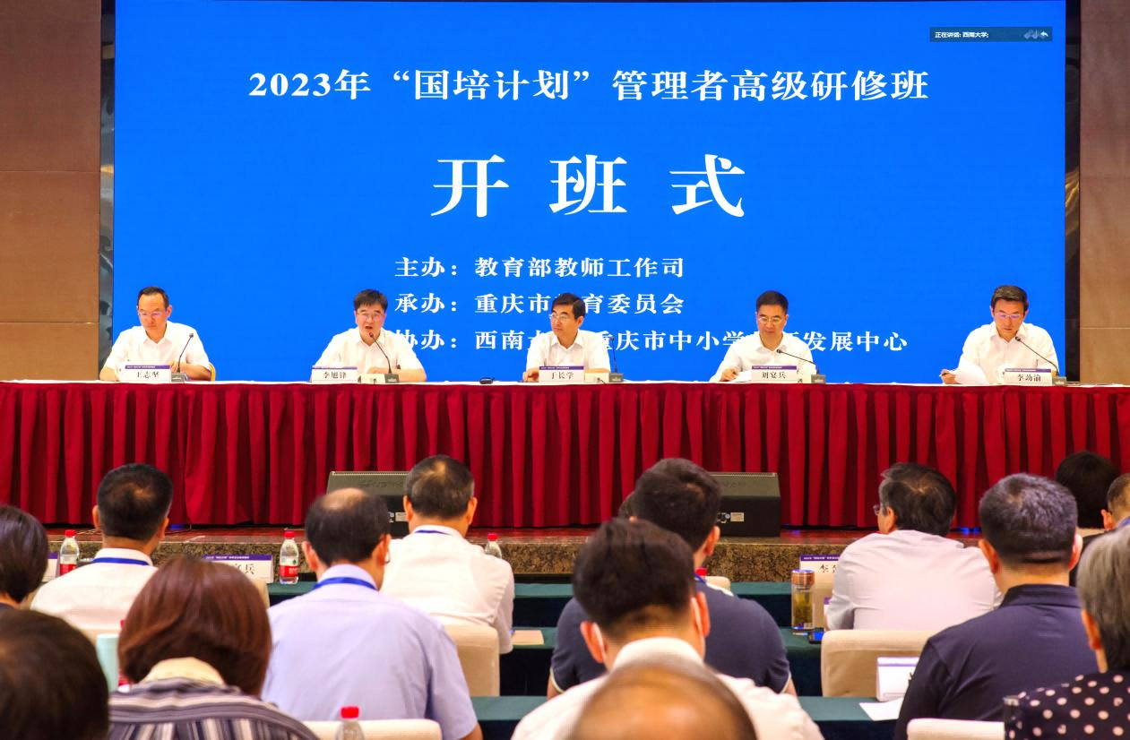 2023年6月26-28日,由教育部主办、重庆市教委承办的2023年教育部“国培计划”管理者高级研修班在西南大学举行。全国31个省(区、市、新疆建设兵团)教育行政部门和“国培计划”项目办、中西部骨干项目、示范项目负责人以及全国教师培训专家工作组等200多人参加培训。教育部教师工作司司长任友群,基础教育司一级巡视员于长学,重庆市委教育工委书记、市教委主任刘宴兵,西南大学党委书记李旭锋和党委常委、副董事长王志坚出席开班仪式。