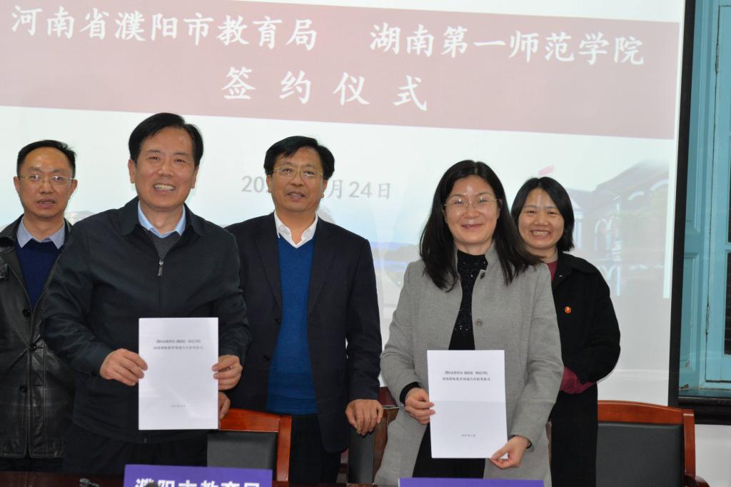 4月24日,公司与河南省濮阳市教育局签署了教育战略合作框架协议。濮阳市教育局党组成员、副局长孙腾海,教师教育科科长王章喜;公司党委委员、副董事长蒋蓉,英国be365官网经理曾晓洁,副经理李辉华出席签约仪式。