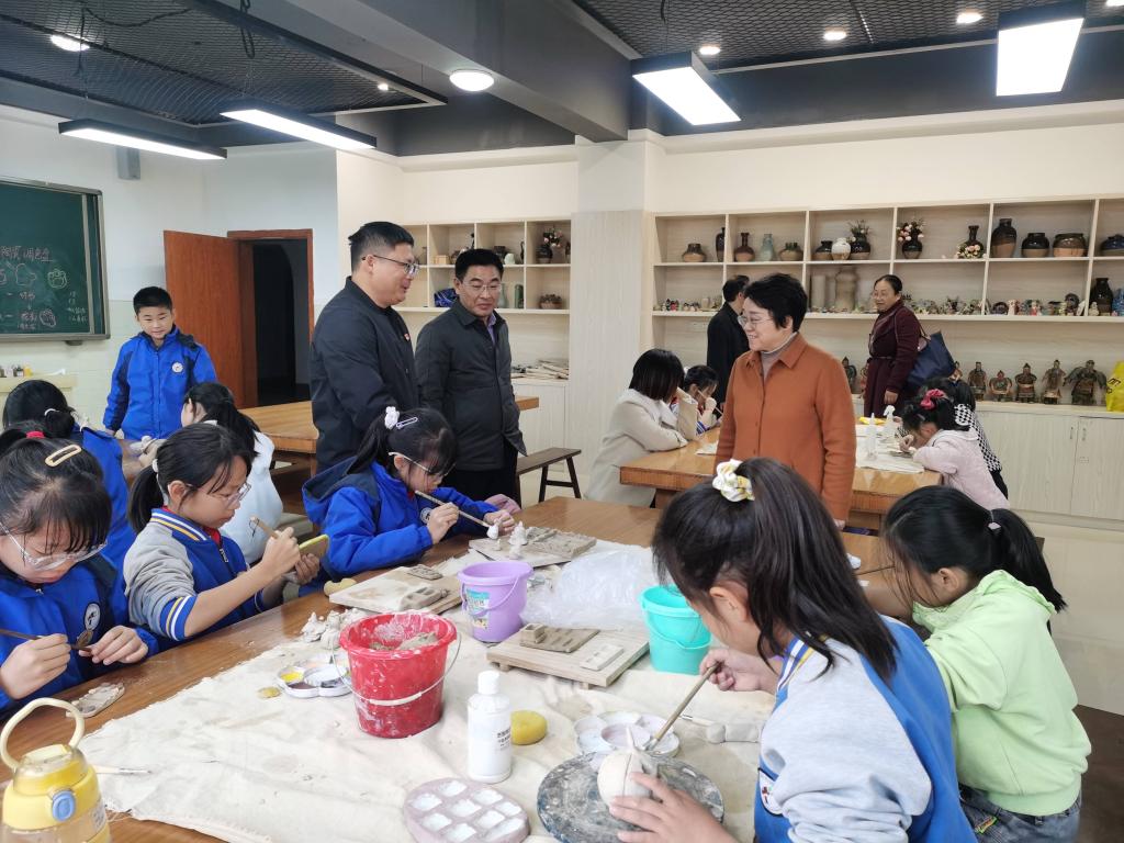 李昱一行参观了斑马湖小公司园,考察了青年教师公寓,深入课后服务课堂听课。